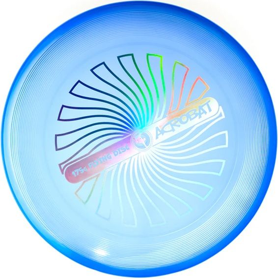 Disc zburator Acrobat - Frisbee Albastru are o greutate de 175 de grame, care este standardul mondial pentru competitiile de Frisbee. Greutatea perfecta combinata cu o ridicare si o aderenta perfecta! In plus, acestea sunt printre putinele Frisbee-uri transparente de pe piata.