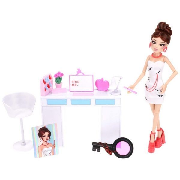 Continut: 1x papusa la moda Dress To Impress, 1x top, 1x fusta, 1x pereche de pantofi, 1x accesoriu pila de unghii si 1x carte de colectionar