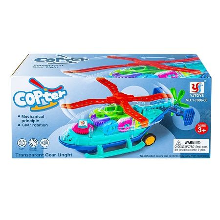 - Datorita carcasei transparente, copilul poate vizualiza interiorul elicopterului, rotitele si circuitele frumos colorate si luminate in culorii vii.