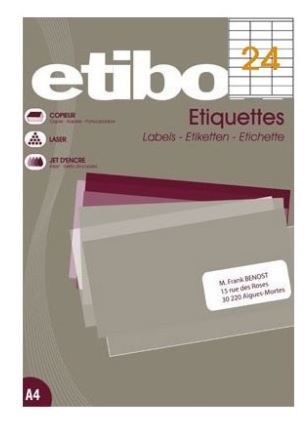 Etichete autocolante Etibox 119750, 24/A4, 70x35mm, permanente, colturi drepte, alb, top 100 coli (2400 etichete)