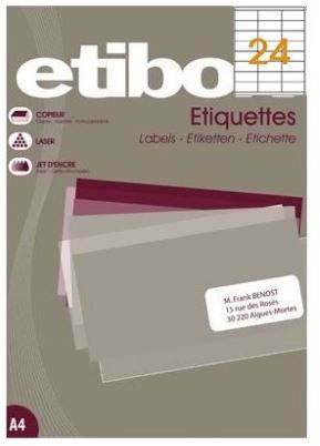 Etichete autocolante Etibox 119751, 24/A4, 70x37mm, permanente, colturi drepte, alb, top 100 coli (2400 etichete)