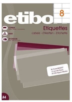 Etichete autocolante Etibox 119773, 8/A4, 105x70mm, permanente, colturi drepte, alb, top 100 coli (800 etichete)
