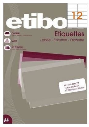 Etichete autocolante Etibox 119774, 12/A4, 105x48mm, permanente, colturi drepte, alb, top 100 coli (1200 etichete)