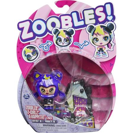 Setul cu 1 Zoobles Z-Girlz si Happitat include o figurina moderna Zoobles Z-Girlz, un Happitat potrivit si o lista care te ajuta sa tii evidenta colectiei tale. Toate Zoobles Z-Girlz se transforma in doua etape, in mod uimitor.