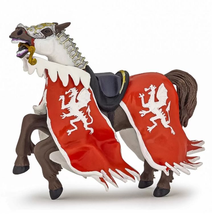 -Figurina Papo calul regelui cu blazon dragon rosu