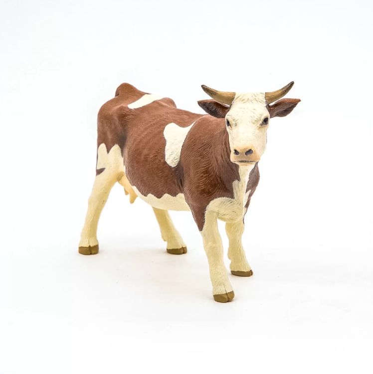 Cu figurinele universului fermei, trezeste-te cu cantatul cocosului, mergi sa hranesti animalele si ridica fructele si legumele gradinii de legume. Rasa Simmental provine din Elvetia si este considerata una dintre cele mai vechi rase de bovine din lume! Sunt 41 de milioane de vaci in intrega lume si sunt populare pentru excelenta lor reputatia in productia de lapte si carne. Poate masura pana la 1, 40 m la greaban si cantareste 700 kg! Produsul are urmatoarele dimensiuni: 13 x 4 x 8cm si este recomandat copiilor cu varsta peste 3 ani. De mai bine de 20 de ani, Papo inoveaza constant si ii face pe copii din intreaga lume sa viseze cu o gama bogata de peste 600 de produse, reprezentand 12 lumi, animale si personaje. De la modelul original la serie, fiecare dintre figurinele Papo a fost conceputa si creata in Franta pentru a fi fabricata intr-o permanenta preocupare pentru calitate. Pictate manual, atentia la detalii este acum recunoscuta. Figurinele Papo se disting prin acuratete si realism, detaliile sunt de asa natura incat am putea crede ca se vor pune in miscare.
