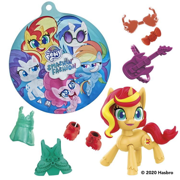 Acesti ponei se distreaza la maxim! Fiecare set Smashin. Fashion contine o figurina ponei care poate fi asezata in diferite posturi. Poneiul este insotit de 7 accesorii din lumea modei, inclusiv 1 accesoriu surpriza! Asaza punguta Smashin. Fashion pe o suprafata plana si zdrobeste-o pentru a vedea cum se extinde si cum explodeaza! Punga se va sparge si va dezvalui un accesoriu inspirat de personaj si un balon al prieteniei. Cauta figurinele Twilight Sparkle, Rainbow Dash si Sunset Shimmer pentru a combina accesoriile pentru lookuri extraordinare si lanseaza-te in aventuri nemaipomenite cu prietenii! Acest pachet contine figurina Sunset Shimmer.