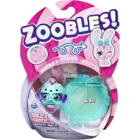 Bucura-te de transformari magice instantanee cu Zoobles! Setul de 1 Zoobles si Happitat include o figurina Animal Zoobles adorabila, un Happitat potrivit cu un fundal tematic si o lista care te va ajuta sa tii evidenta colectiei tale. Fiecare Zoobles Animal este la inceput o bila colorata care se transforma intr-un animal foarte adorabil atunci cand o rostogolesti pe Happital-ul corespunzator.