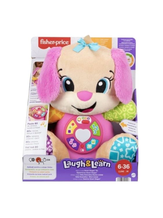 Catelusul interactiv Fisher-PriceRade si Invata este jucaria ideala pentru bebelusi, combinand distractia cu invatarea prin joaca. Cu peste 80 de cantece, sunete si expresii amuzante, catelusul ii ajuta pe cei mici sa descopere primele cuvinte, culori, litere, numere si forme. Textura moale si designul prietenos il transforma intr-un companion perfect pentru imbratisari si explorare zilnica. Functia Smart Stages permite ajustarea nivelului de invatare in functie de varsta copilului, de la 6 pana la 36 de luni, oferind continut adaptat etapelor de dezvoltare. Prin apasarea butoanelor luminoase de pe burtica, copilul invata prin cantece si fraze simple concepte de baza precum ABC, 123, parti ale corpului si emotii. Aceasta jucarie educativa incurajeaza dezvoltarea limbajului, coordonarea mana-ochi si recunoasterea senzoriala, fiind un cadou excelent pentru bebelusi curiosi care descopera lumea pas cu pas.