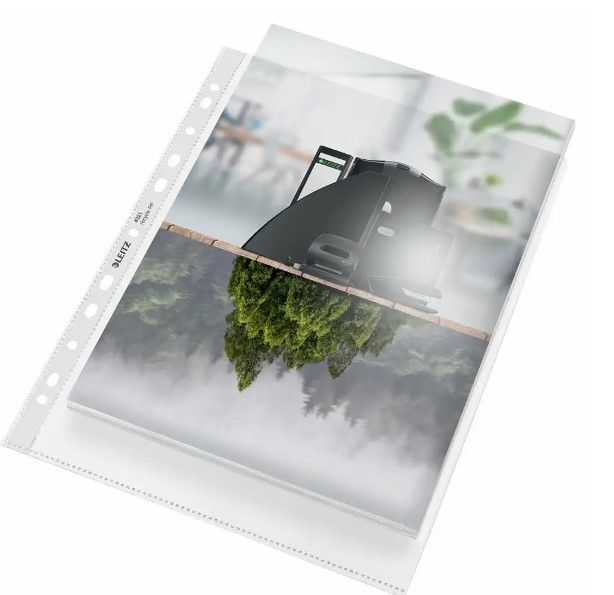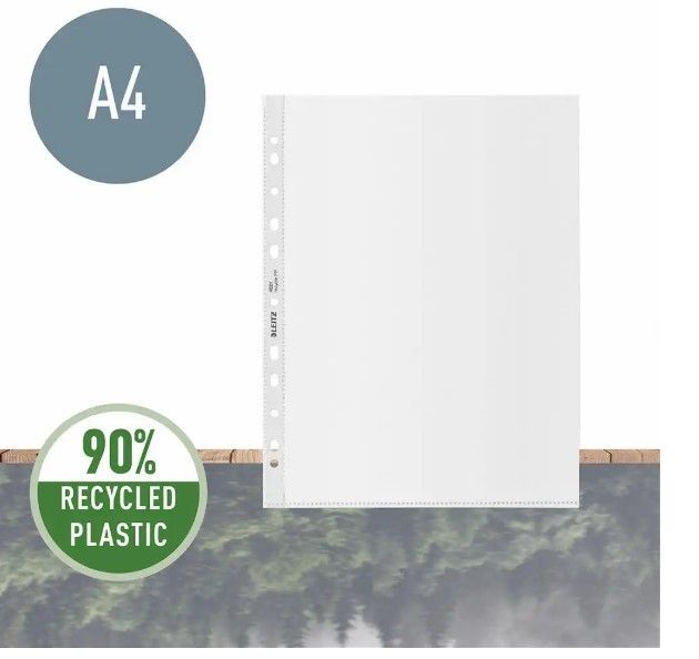 Folie de protectie Leitz din material de calitate superioara, reciclat, potrivit pentru documente A4. Plastic reciclat cu impact neutru asupra mediului si 100% reciclabil.