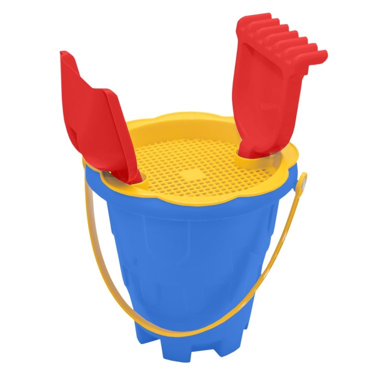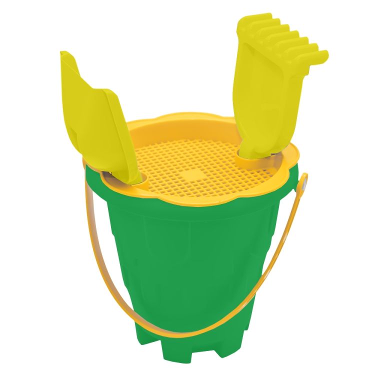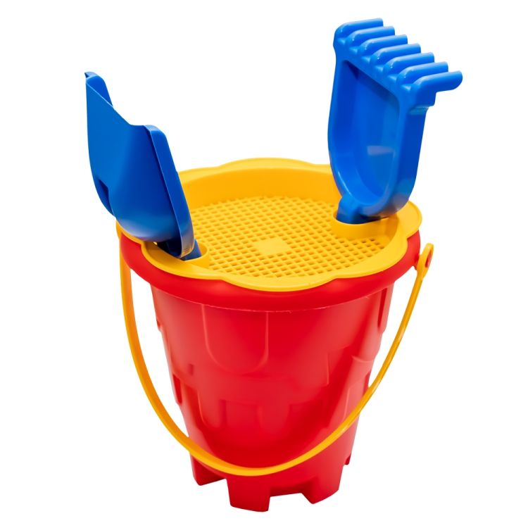 - Jucaria ROBENTOYS contine o galetusa si trei accesorii: lopata, grebla si sita.