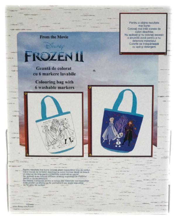 Fiecare fetita isi doreste sa faca parte din lumea Frozen. Cu aceasta geanta originala sigur isi va impresiona prietenele. Cu imaginatie si veselie isi va putea colora geanta in culorile preferate. Daca mai tarziu isi doreste ceva nou se poate sterge cu o laveta cu apa si o poate recolora. O singura gentuta, o multime de posibilitati.