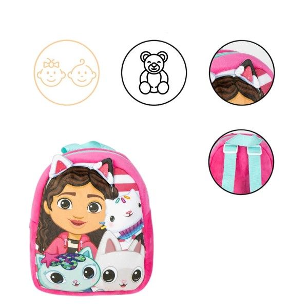 -Ghiozdan gradinita mini Cerda Gabby's Dollhouse, 22 cm, 1 compartiment, material catifelat, roz, 36898