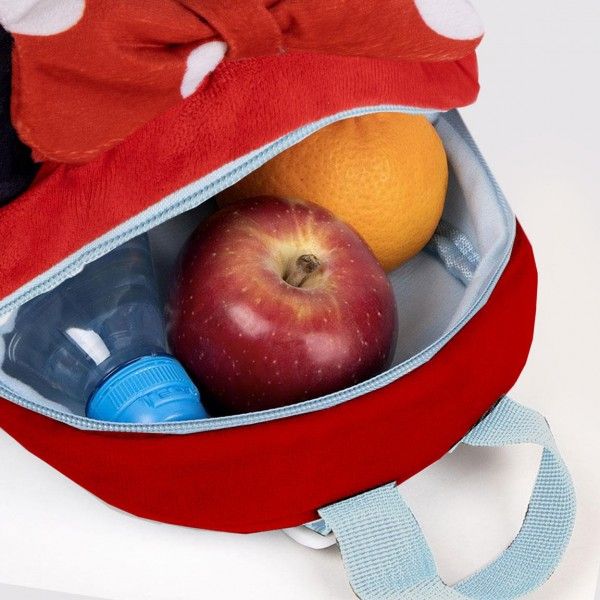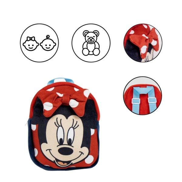 -Ghiozdan gradinita mini Cerda Minnie, 22 cm, 1 compartiment, material catifelat, rosu cu negru, 36896