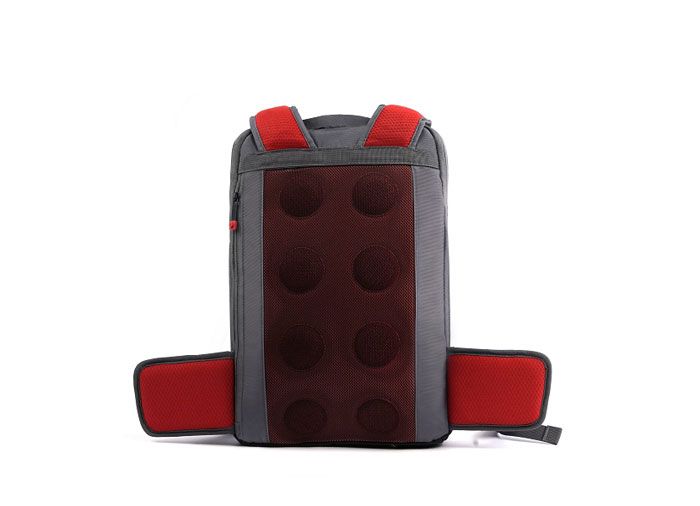 Acest ghiozdan are un panou dorsal din EVA in forma unei caramizi LEGO, cu mesa care permite circulatia aerului. Acest ghiozdan are grija de spatele studenitlor, cu cureaua ajustabila la solduri, bretelele ajustabile, cureaua ajustabila la piept si load-lifters. Ghiozdanul poate fi astfel ajustat pentru a se potrivi perfect si intr-un mod sanatos pentru postura.