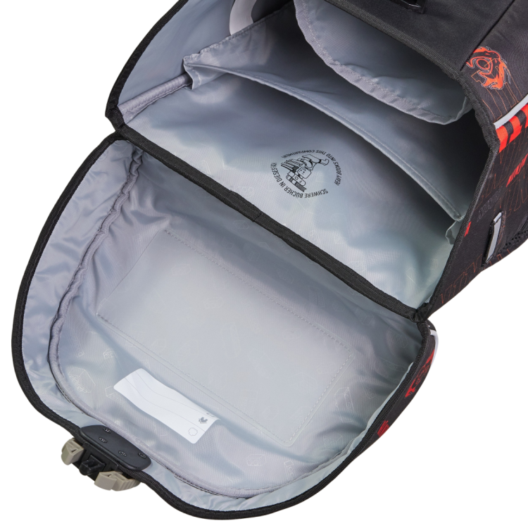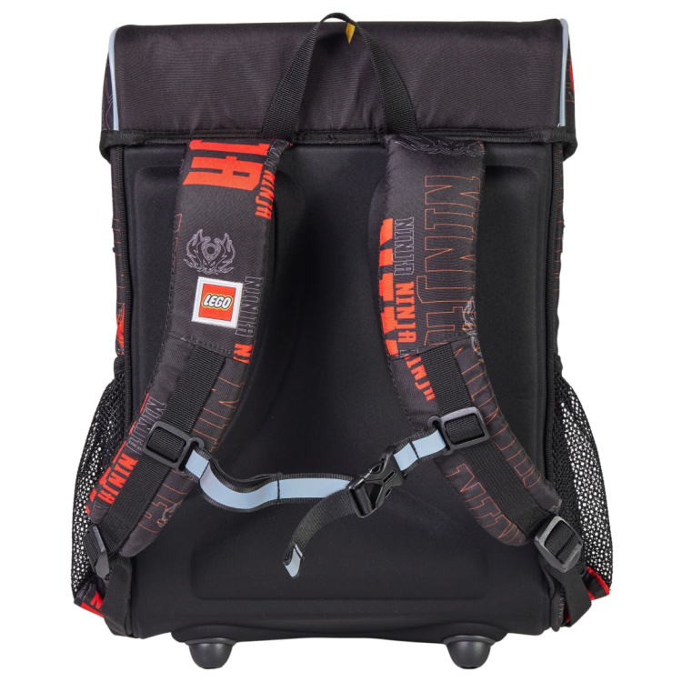 Rucsacul Easy Light este un ghiozdan spatios si usor, cu mult loc pentru carti, caiete, penar si cutia de pranz, sticla pentru apa. Are doua buzunare laterale din plasa, utile pentru sticla de apa si fructe. Pentru un confort sporit la purtare, rucsacul dispune de un panou ergonomic la spate, bretele reglabile si o curea la piept, precum si un buzunar interior pentru a tine cele mai grele carti aproape de spate. In compartimentul principal mare poti atasa cheile sau portofelul LEGO, iar orarul scolii este pozitionat in partea de sus a capacului, astfel incat sa ai mereu programul zilei la indemana. Pentru a menitne stabilitatea atunci cand capacul este deschis, rucsacul are patru picioruse sub baza, care protejeaza de murdarie.