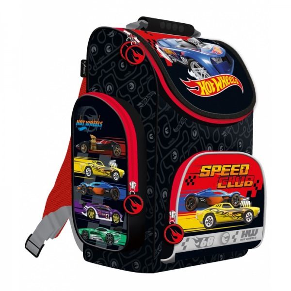 -Ghiozdan St. Majewski Hot Wheels, 1 compartiment, 3 buzunare, negru