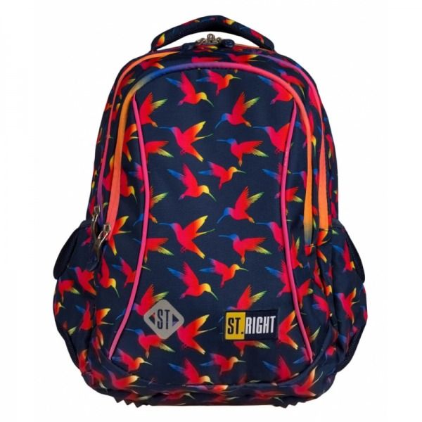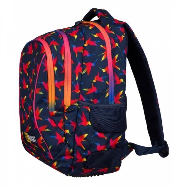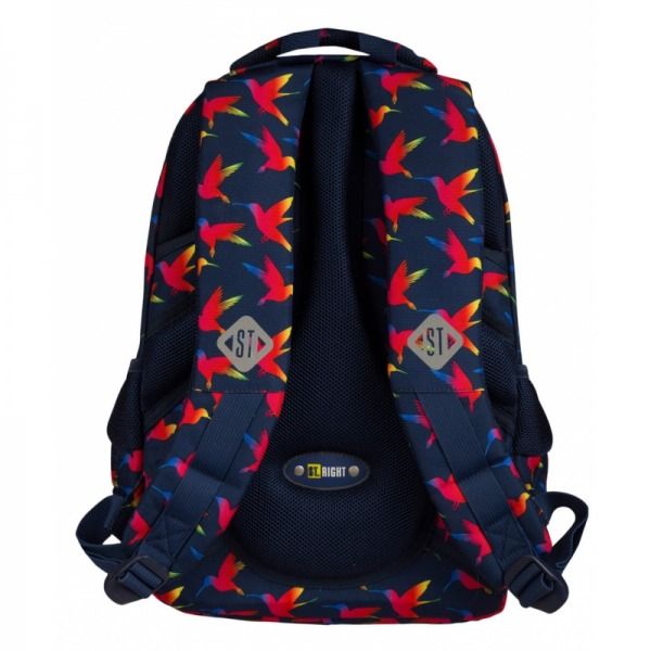 -Ghiozdan St. Majewski St. Right Rainbow Birds, 3 compartimente, 2 buzunare, negru cu rosu