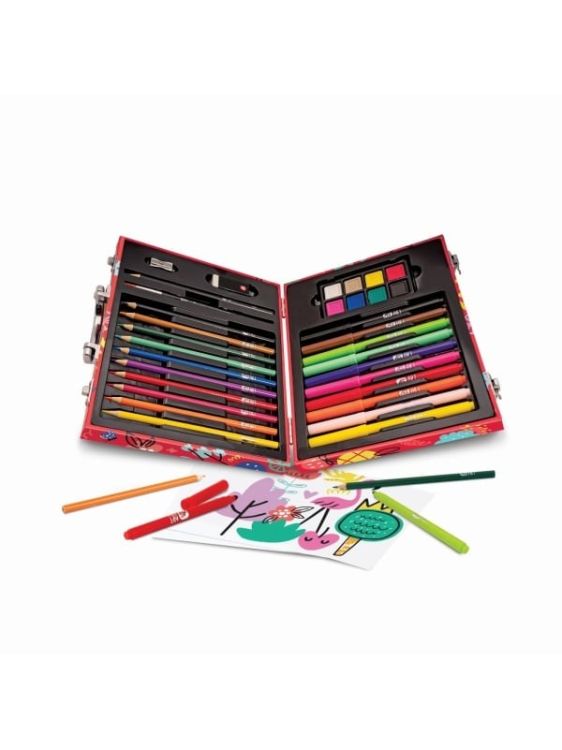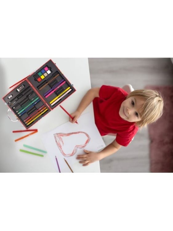 Indiferent cate culori ai, niciodata nu vor fi suficiente pentru a da viata imaginilor tale preferate! Cu Trusa de lux pentru desen, poti explora creativitatea fara limite, avand la dispozitie 50 de accesorii pentru desen si pictura, perfecte pentru a invata diferite tehnici artistice. Toate materialele sunt organizate intr-o trusa eleganta, cu maner practic, pe care o poti lua cu tine oriunde mergi acasa, la scoala sau in vacanta. Setul include 10 markere lavabile, 10 creioane colorate, 8 acuarele, 18 coli de colorat, 1 creion de desen, 1 pensula, 1 radiera, 1 ascutitoare. Un set complet, ideal pentru tinerii artisti care vor sa experimenteze, sa creeze si sa se distreze in lumea culorilor!