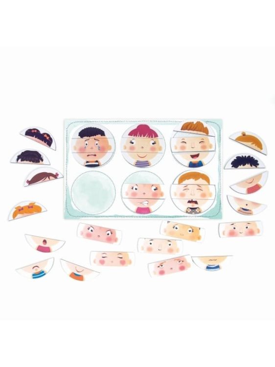 Un joc educativ de invatare emotionala cu 42 de magneti de hartie. Setul ii familiarizeaza pe copii cu invatarea emotionala, ajutandu-i sa recunoasca mai intai diferitele expresii faciale si apoi, cu ajutorul ghidului ilustrat, sa invete cum se reflecta emotiile umane in expresiile lor. Fiecare magnet descrie trasaturi diferite pentru a reflecta expresii si emotii variate. Cum arata cineva cand este fericit, trist sau suparat? Cum se manifesta sentimentele de gelozie, rusine, iubire sau suferinta?
