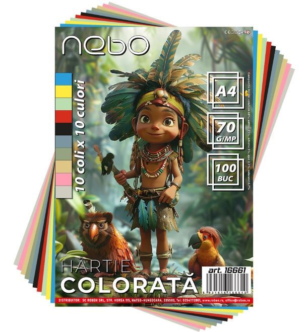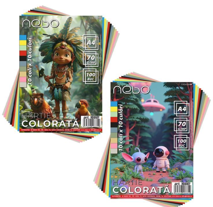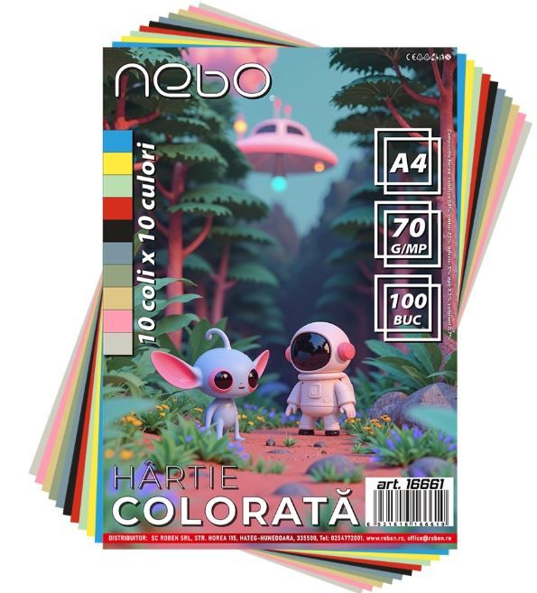 -Hartie color A4, 10 culori, 100 coli/set, 70g/mp - NEBO