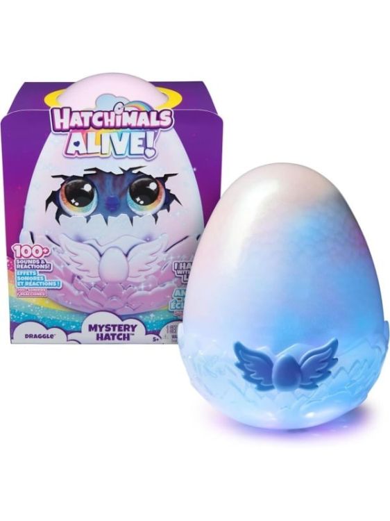 Hatchimals Alive Mystery Hatch au nevoie de dragostea ta pentru a ecloza. Dispunand de o experienta captivanta de eclozare cu ceata, lumini si peste 100 de sunete si reactii, acesti Hatchimals sunt necesare pentru fani. Pe cine vei ecloza? Este o surpriza! În fiecare ou Mystery Hatch Hatchimals se afla 1 din 2 personaje. Iubeste-ti propriul Hatchimal la viata cu Hatchimals Alive Mystery Hatch. Îmbratiseaza, atinge, ridica si balanseaza oul pentru a-ti incuraja personajul sa eclozeze. Oul se aprinde si se balanseaza, si vei auzi chiar si reactia Hatchimal-ului tau din interior. Odata ce oul tau a primit suficienta dragoste, aduna familia si prietenii si pregateste-te pentru cea mai tare experienta de eclozare. O ceata magica apare si oul straluceste ca un curcubeu, creand asteptarea. Dupa eclozare, noul tau prieten Mystery Hatch va inspira jocul imaginativ. Cei carora le plac jucariile surpriza, animalele de companie electronice, figurinele de actiune, papusile si jocul in casa de papusi vor adora Hatchimals Alive Mystery Hatch. Acest pachet contine personajul Draggle.