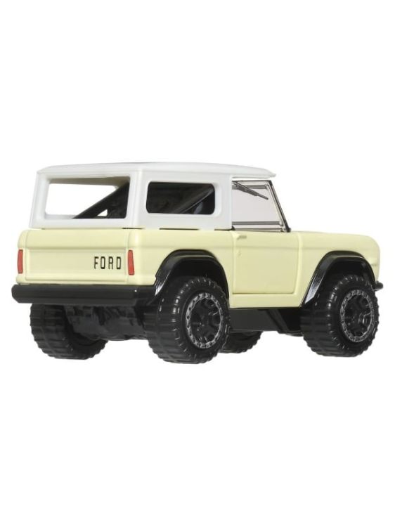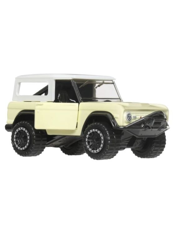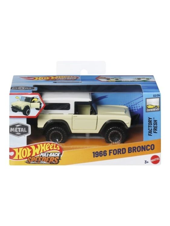 Aceste vehicule din metal Hot Wheels sunt la scara 143, cu decor autentic. Fiecare include o caracteristica interactiva precum Rolomatics, care evidentiaza miscarile motorului, sau usile, capotele sau portbagajul care se deschid. Cu detalii atat de grozave, posibilitatile de joaca sunt nesfarsite pentru copii, iar colectionarii le vor dori pe toate. Fiecare se vinde separat, in functie de disponibilitate. Culorile si decoratiunile pot varia. Acest pachet contine masinuta metalica Ford Bronco 1966 Factory Fresh.