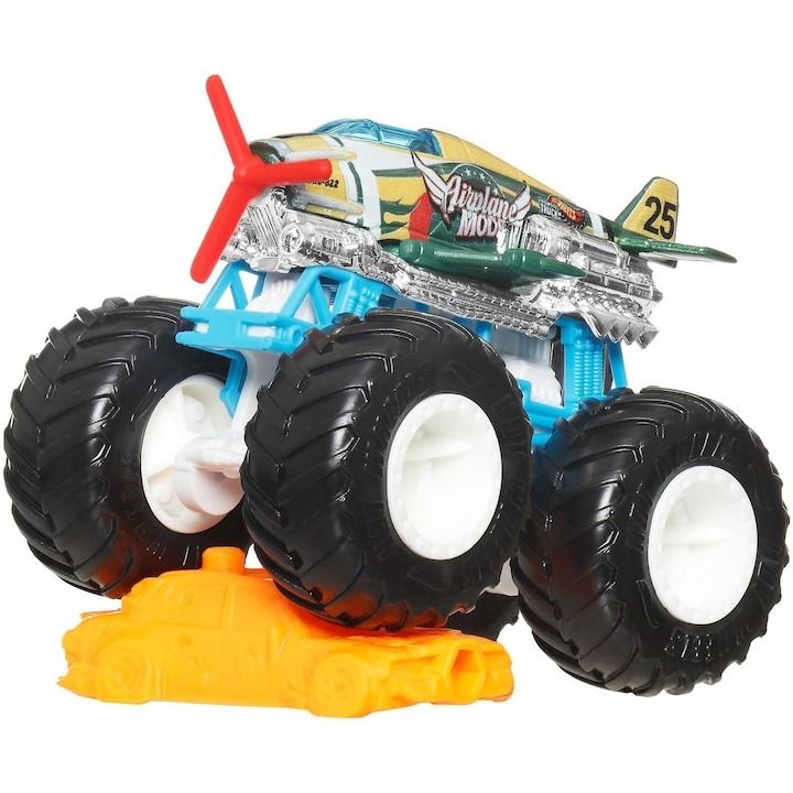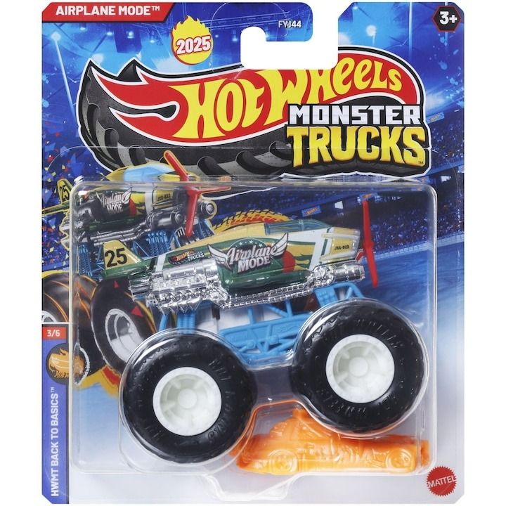 Colectioneaza masinutele Hot Wheeels gigantice pentru numeroase cascadorii. Striviti competitia cu masinuta de baza 164 are motoare puternice de frecare si actiuni feroce pe roti, acesti monstri sunt de neoprit. Fiecare se vinde separat, in functie de disponibilitate. Culorile si decoratiunile pot varia. Acest pachet contine personajul Airplane Mode.