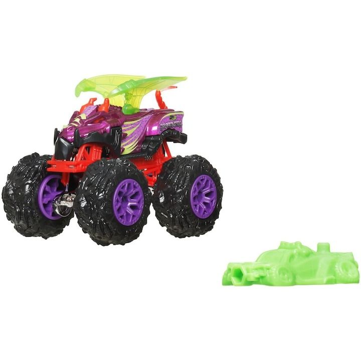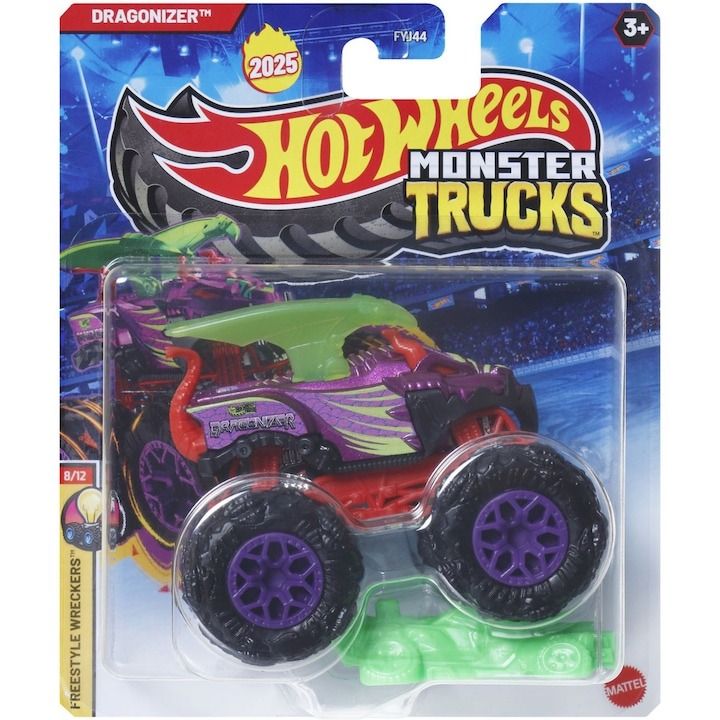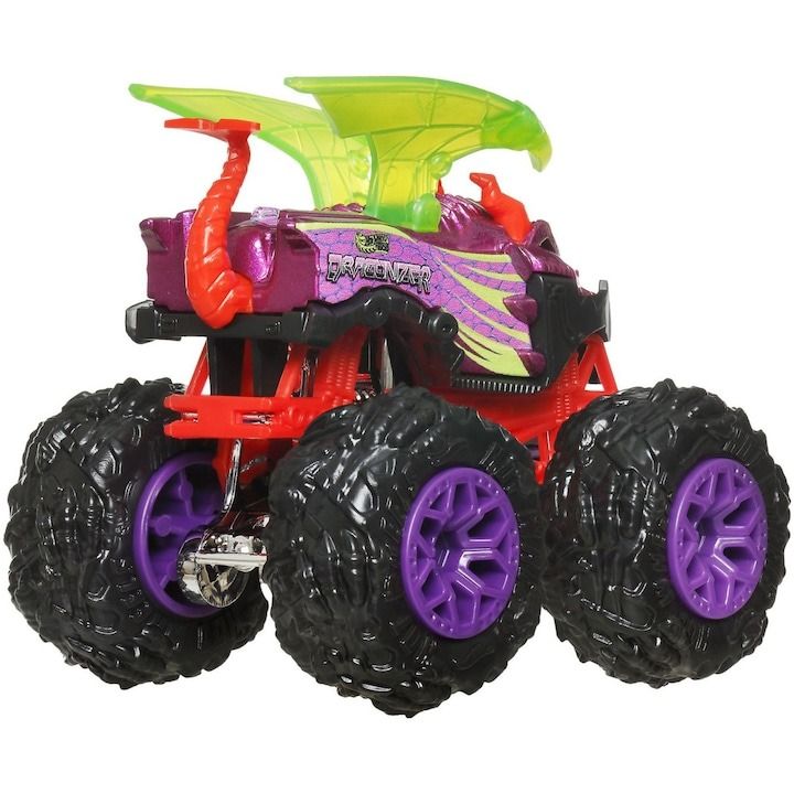 Colectioneaza masinutele Hot Wheeels gigantice pentru numeroase cascadorii. Striviti competitia cu masinuta de baza 164 are motoare puternice de frecare si actiuni feroce pe roti, acesti monstri sunt de neoprit. Fiecare se vinde separat, in functie de disponibilitate. Culorile si decoratiunile pot varia. Acest pachet contine personajul Dragonizer.