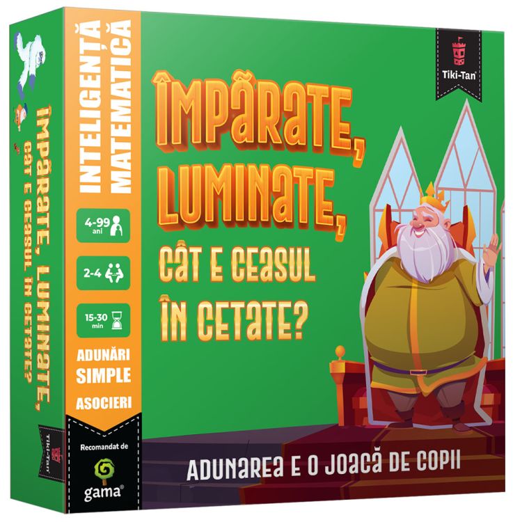 Toti supusii din regat vor sa-l vada pe-mparat! Dar numai unul poate avea aceasta onoare. In acest joc educativ, trebuie sa te intreci cu adversarii si sa fii primul care ajunge la palatul imparatesc. Alege cele mai potrivite misiuni, gestioneaza cu atentie resursele pe care le ai, rezolva adunari simple si parcurge traseul, folosindu-te de abilitatile tale de strategie.