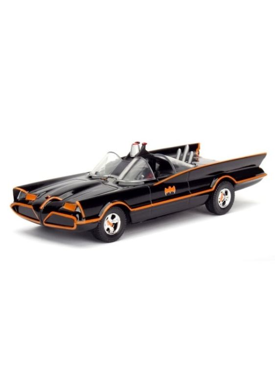 Jada Batman DC masinuta metalica Batmobile scara 1 la 32. Masina legendara a Cavalerului Intunecat, reprodusa in miniatura! Modelul Classic TV Series Batmobile aduce la viata emblematica masina din serialul clasic Batman. Realizata din metal turnat (die-cast), aceasta replica detaliata impresioneaza prin finisajele sale autentice, accentele portocalii si simbolul distinctiv Batman de pe portiere. Perfecta pentru colectionari si fanii universului DC, masina Batmobile combina nostalgia anilor &rsquo60 cu eleganta designului retro. Recomandata copiilor de la 8 ani in sus, aceasta piesa este o adevarata bijuterie in orice colectie de vehicule die-cast.