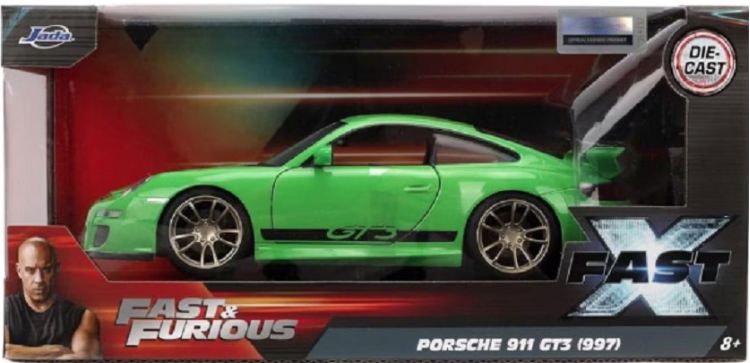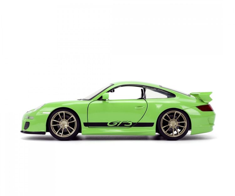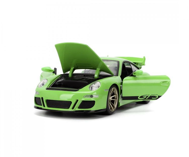 Masinuta din metal Porsche 911 2007, din celebra serie Fast & Furious usile, capota si portbagajul se pot deschide, scara 124 lungime 20 cm.
