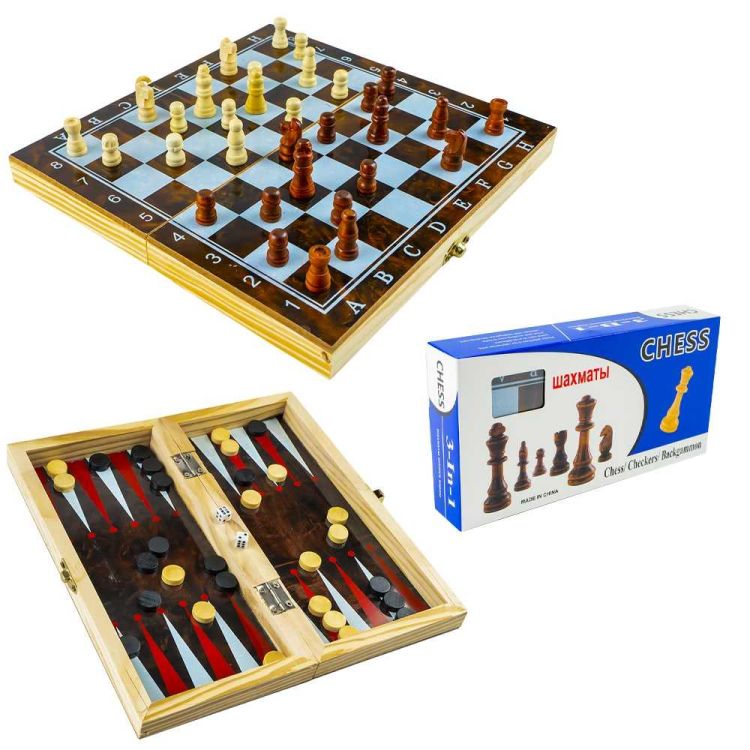 -Joc 3 In 1. Sah, Table, Dame! Cutie Lemn, 34x17 cm