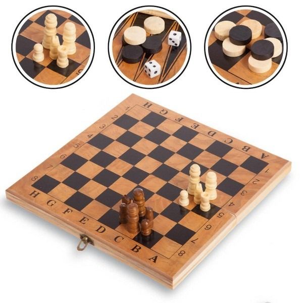 Joc table, sah, dame, 3in1 CNX, carcasa lemn maro, 23X24cm, S2414, piese mici, 3+