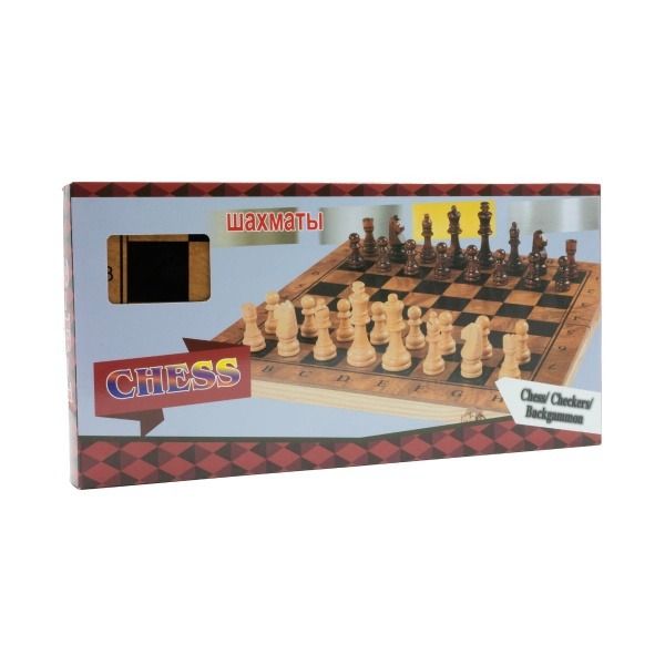 Joc table, sah, dame, 3in1 CNX, carcasa lemn maro, 34x35cm, S3830, piese mediu, 3+