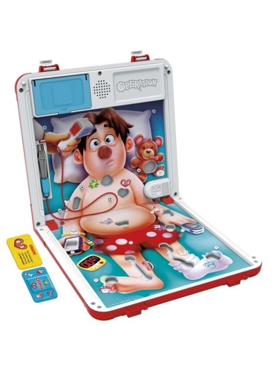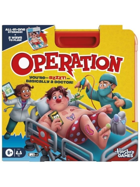 Este jocul de societate preferat al copiilor, cu imbunatatiri interesante! In aceasta editie a jocului Operatie, alege dintre cele 2 moduri de joc joc clasic in modul Spital sau modul Urgenta care te tine cu sufletul la gura. In modul Spital, micii doctori trag carti Bandaje pentru afectiuni amuzante. Suspansul creste cand incearca sa isi tina mainile stabile in timp ce il opereaza pe Cavity Sam sau &mdash BZZZT! &mdash i se aprinde nasul rosu! In modul Urgenta, cursa incepe pentru a elimina cat mai multe afectiuni posibil inainte de expirarea timpului. Dar ups! Daca penseta atinge partea laterala, Cavity Sam va sughita, va tipa si va scoate alte sunete amuzante, care ii vor face pe copii sa chicoteasca! In ambele moduri, cel care elimina cele mai multe afectiuni castiga si &bdquovindeca&rdquo pacientul. Acest joc pentru prescolari este ambalat intr-o cutie de depozitare in care au loc toate piesele, astfel incat este un joc minunat de calatorie pentru copii, pentru joaca oricand, oriunde.