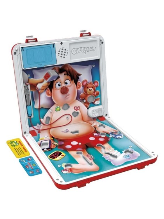 ESTI BZZZT! PRACTIC DOCTOR. ESTE JOCUL DE SOCIETATE PREFERAT AL COPIILOR, CU ACTUALIZARI INTERESANTE! IN ACEASTA EDITIE A JOCULUI OPERATION, ALEGE DINTRE 2 MODURI DE JOC JOCUL CLASIC IN MODUL SPITAL SAU O FRENEZIE PE MUCHIE DE CUTIT IN MODUL URGENTA. IN MODUL SPITAL, MICUTII DOCTORI TRAG CARTI CU BANDAJE PENTRU AFECTIUNI TRASNITE. SUSPANSUL CRESTE PE MASURA CE INCERCA SA-SI TINA MAINILE FERME IN TIMP CE IL OPEREAZA PE CAVITY SAM SAU BZZZT! NASUL SAU ROSU SE APRINDE! IN MODUL URGENTA, CURSA INCEPE PENTRU A INDEPARTA CAT MAI MULTE AFECTIUNI POSIBIL INAINTE DE EXPIRAREA TIMPULUI. DAR UPS! DACA PENSETA ATINGE LATERALUL, CAVITY SAM VA RAGAI, VA TIPA SI VA SCOATE ALTE SUNETE ISTERICE CARE II FAC PE COPII SA CHICOTEASCA! IN AMBELE MODURI, CINE INDEPARTEAZA CELE MAI MULTE AFECTIUNI CASTIGA SI ISI VINDECA PACIENTUL. ACEST JOC ADORABIL VINE INTR-O GEANTA DE TRANSPORT ALL-IN-1 CU SPATIU DE DEPOZITARE, DECI ESTE UN JOC DE CALATORIE EXCELENT PENTRU COPII, PENTRU JOACA ORICAND SI ORIUNDE.