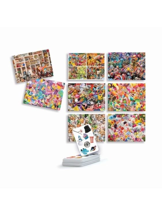 Jocul include 30 de carti cu doua fete, 4 carti de masa cu doua fete, Brosura de instructiuni.