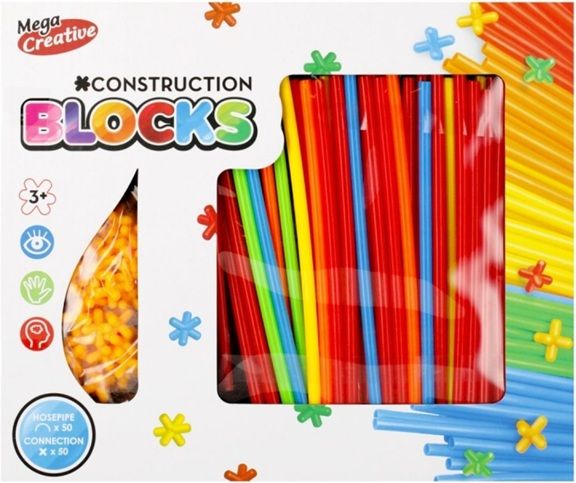 Avantajele produsului: dezvoltarea abilităților manuale și a gândirii creative, dezvoltarea pasiunii pentru bricolaj, blocuri colorate în formă de paie de băut.