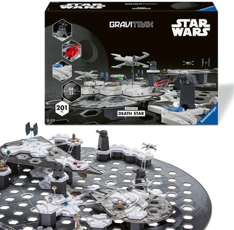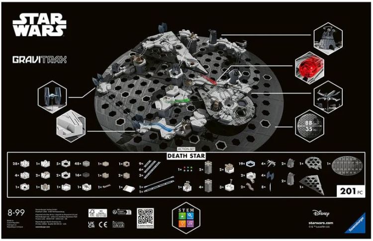 Placa de baza Gravitrax este prezentata in acest set sub forma impresionanta a Stelei Mortii, integrand fascinatia si aventura Star Wars in circuitul Gravitrax.