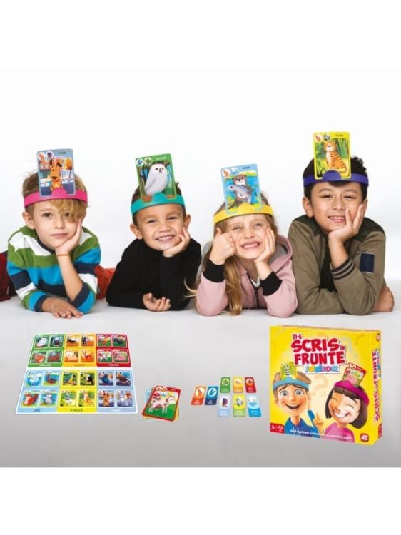 Cel mai amuzant si mai rapid joc, ca toata lumea stie ce esti, in afara de tine. Toti jucatorii poarta o banda cu un cartonas pe cap si pun intrebari inchise coechipierilor pana cand inteleg ce reprezinta cardul lor. Am mancare? Am legume? Sunt rosu? Poti fi orice. Animal, hrana sau obiect. Pune intrebari inteligente si afla ce se ascunde in cardul de pe capul tau, inainte de expirarea timpului. Scapa mai intai de toate jetoanele si castiga. Un joc simplu, rapid si distractiv pentru intreaga familie. Contine 4 benzi de cap, 24 cartonase cu animalute, 1 harta cu animalute, 32 carduri cu indicii, brosura cu instructiuni.