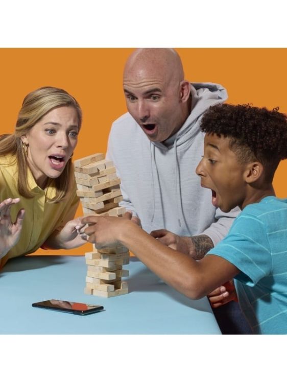 Faceti echipa, construiti si alergati pentru a lua coroana! Jocul Jenga este o intorsatura frenetica si distractiva a jocului clasic Jenga. Jucatorii se impart in echipe si se intrec pentru a-si construi obiectul Jenga folosind blocurile din lemn de esenta tare. Un coechipier descrie configuratia afisata pe card si ghidati doar de descrierea lor, ceilalti se grabesc sa construiasca si sa incununeze creatia lor. Dar ai grija! Daca o echipa o construieste gresit sau face obiectul sa cada, trebuie sa o ia de la capat. Prima echipa care finalizeaza si incoroneaza 3 constructii castiga! Este o experienta de joc distractiva si provocatoare, care combina prietenia, priceperea, suspansul, rasul si putin noroc. Vrei un joc distractiv pentru seara de jocuri de familie? Cu versiuni pentru incepatori si avansati, Jenga este un joc distractiv pentru adulti si copii cu varsta de peste 6 ani.