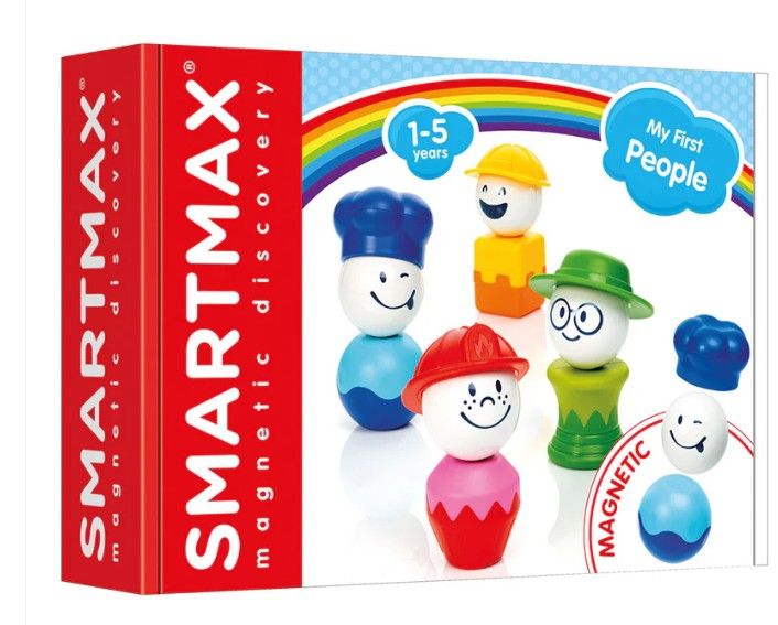 Smart Max, My First People, Primii mei Oameni este un joc de constructie magnetic, recomandate incepand de la 1 an datorita pieselor mari, stimuleaza si dezvolta coordonarea mana-ochi, gandirea logica, recunoasterea culorilor, recunoasterea formelor 2D si 3D, socializarea prin jocul impreuna, fantezia si creativitatea.