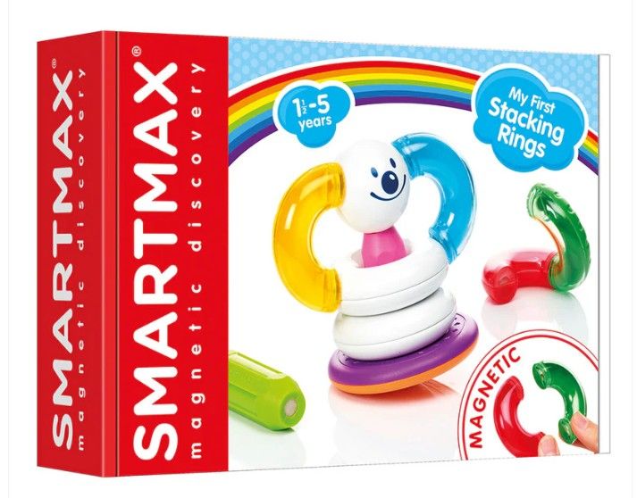 Joc magnetic Smart Max, My First Stacking Rings, Primul meu turn cu inele este un joc de constructie magnetic, recomandate incepand de la 1 an datorita pieselor mari, stimuleaza si dezvolta coordonarea mana-ochi, gandirea logica, recunoasterea culorilor, recunoasterea formelor 2D si 3D, socializarea prin jocul impreuna, fantezia si creativitatea.