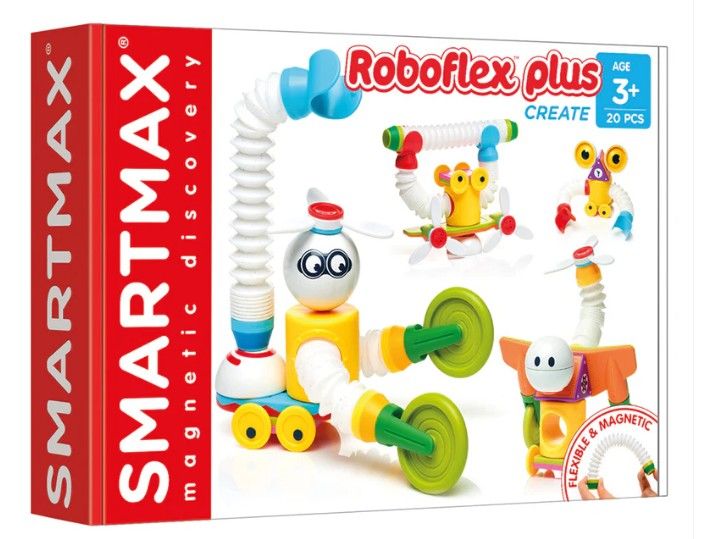 Smart Max, Roboflex Plus, Roboti flexibili, este un joc de constructie magnetic, recomandate incepand de la 3 ani datorita pieselor mari, stimuleaza si dezvolta coordonarea mana-ochi, gandirea logica, recunoasterea culorilor, recunoasterea formelor 2D si 3D, socializarea prin jocul impreuna, fantezia si creativitatea.