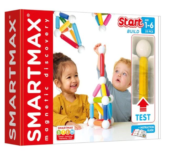 Smart Max, Start, Setul incepatorilor este un joc de constructie magnetic, recomandate incepand de la 1 an datorita pieselor mari, stimuleaza si dezvolta coordonarea mana-ochi, gandirea logica, recunoasterea culorilor, recunoasterea formelor 2D si 3D, socializarea prin jocul impreuna, fantezia si creativitatea.