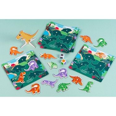 Jucatorul care strange primul 5 dinozauri, castiga.