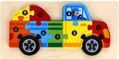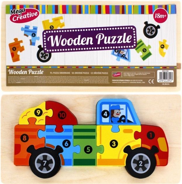 Avantaje produs: Puzzle din lemn Auto 10 elemente din lemn de la MEGA CREATIVE.