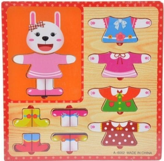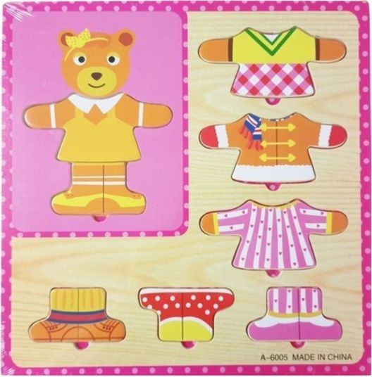 Jucarie bebelusi din lemn - puzzle iepure/urs + haine fetita, multicolor - MegaCreative 462774, 10+8piese, 18+ luni
