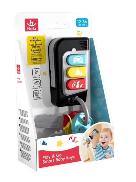 Jucarie interactiva si educativa special conceputa pentru copiii cu varsta intre 12 si 36 de luni. Jucaria imita un set real de chei auto si include telecomanda cu butoane colorate care redau peste 20 de melodii si efecte sonore distractive. Designul realist si culorile vii atrag atentia celor mici si ii incurajeaza sa exploreze, sa apese butoanele si sa descopere sunetele, dezvoltandu-si astfel motricitatea fina si intelegerea relatiei cauza-efect. Cheitele din plastic durabil sunt sigure pentru joaca si sunt usor de manevrat de mainile micute. Este o alegere ideala pentru parintii care doresc o jucarie vesela, sigura si educativa, care sa stimuleze curiozitatea si jocul de rol inca din primele etape ale dezvoltarii.